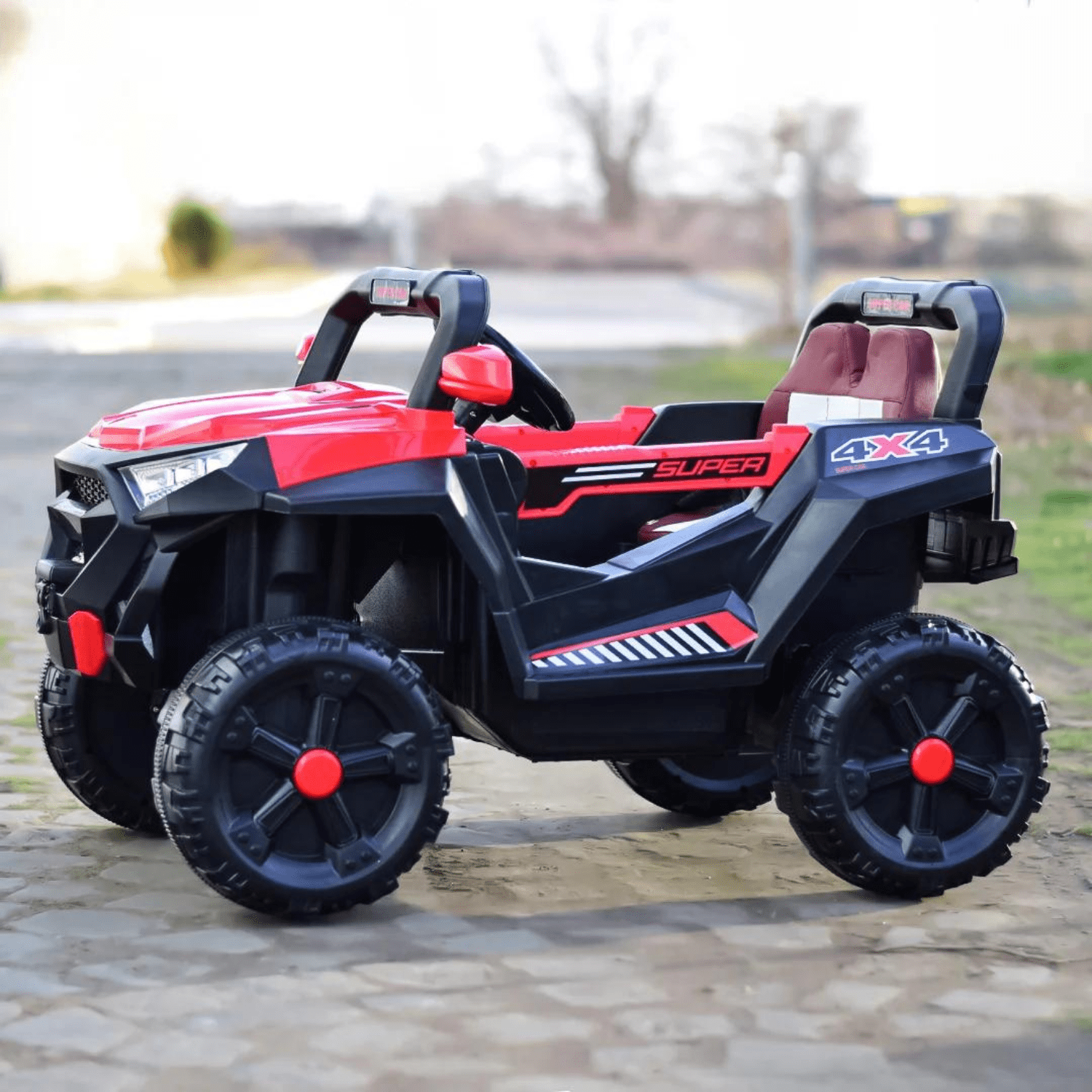 Тя е оборудвана с 4×4, като всеки двигател има мощност от 25W, удобно седалка, облечена с много устойчив екологичен кожух, пластмасови гуми с половинка гумена лента, което ще прави шофирането истинско удоволствие, но за да стане още по-забавно, производителят е добавил музикален плейър, където може да слушате музика. Стартирането и спирането са бавни, което добавя плюс към удобството.