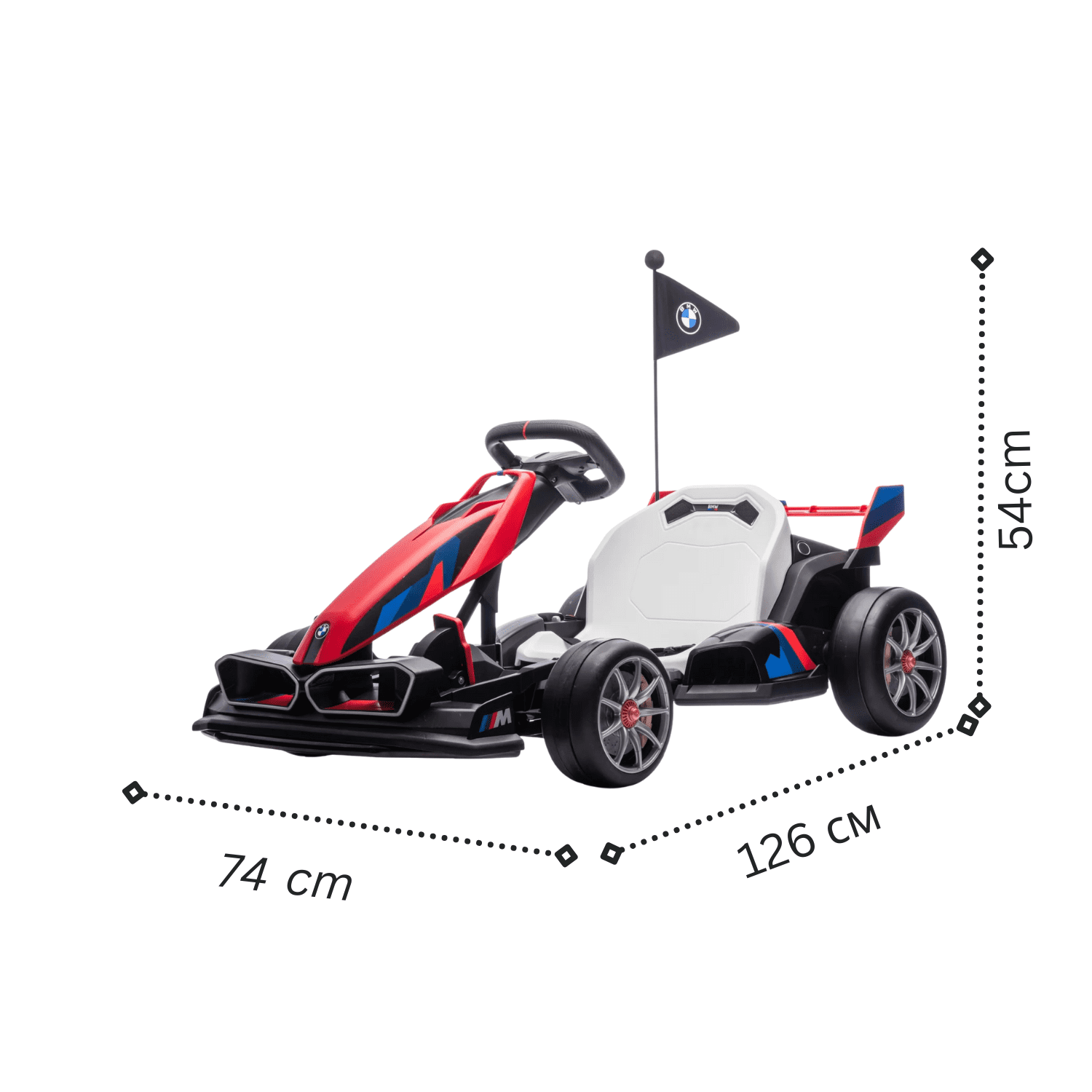 Официален BMW Motorsport стил, спортни линии и ярък червен цвят – този Go-Kart изглежда като истинска картинг машина и привлича погледите.