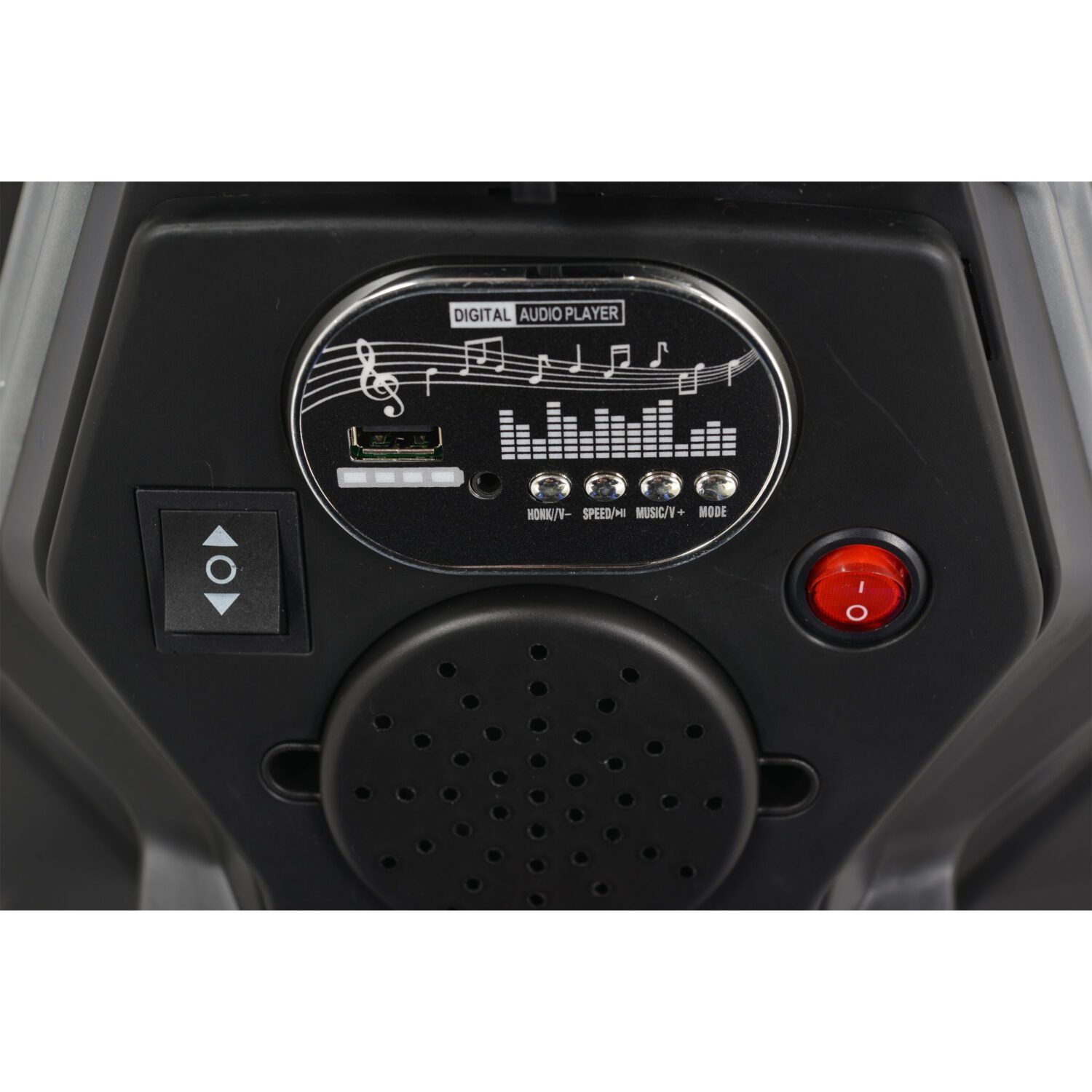 - Допълнителни екстри: Вграден музикален панел с MP3 и USB вход, както и предни LED светлини за допълнителен реализъм и забавление.