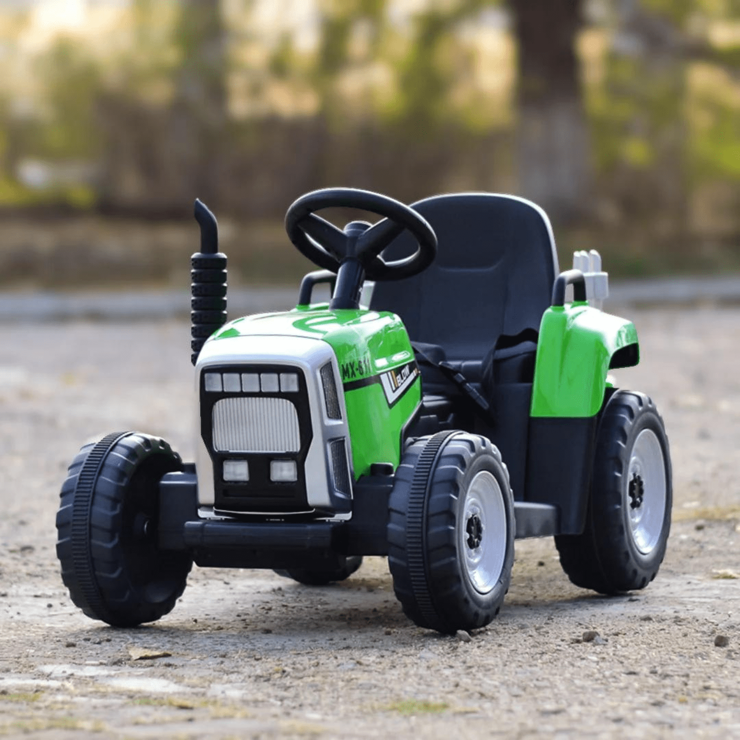 Тракторът може да се управлява ръчно от детето чрез волан, оборудван с бутони за активиране на звукови ефекти.