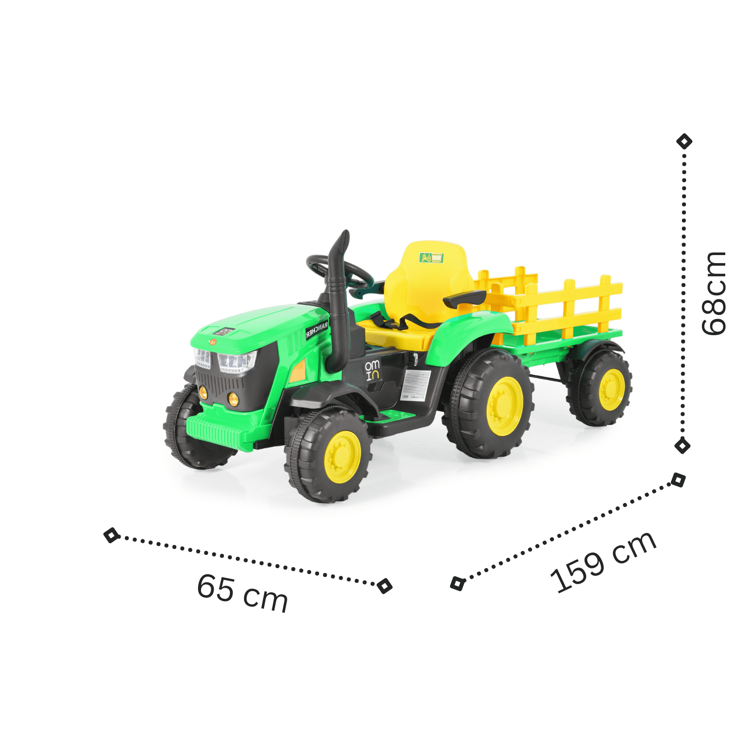 Със своя реалистичен дизайн, който наподобява истински трактор, той ще превърне всяко дете в малък фермер, осигурявайки му усещането за истински шофьор на селскостопанска машина.