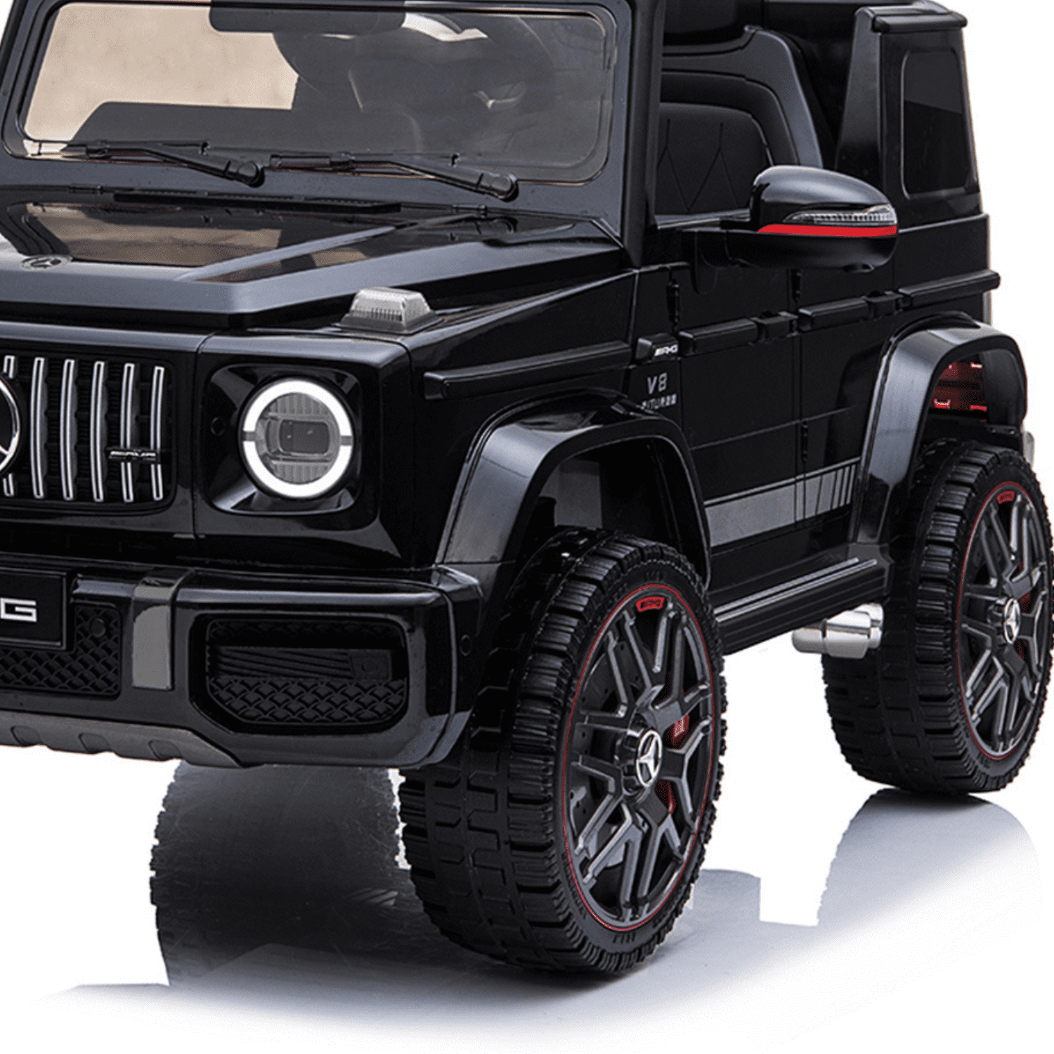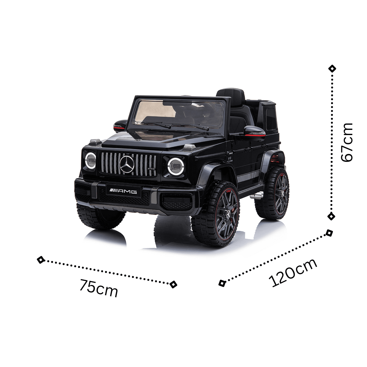 Mercedes Benz G63 AMG е впечатляваща детска акумулаторна кола, която ще запленява въображението на всяко дете. Тази модерна и стилна кола предлага невероятно забавление и разнообразни функции, които ще осигурят незабравимо изживяване на малките шофьори. Интуитивното дистанционно управление с честота 2.4 G осигурява лесна и стабилна комуникация между контролера и автомобила. Това дава възможност на родителите да поемат контрола върху колата в критични моменти или когато детето все още учи да я управлява. Тази кола е перфектният подарък за всяко дете, което иска да изживее автентично преживяване като шофьор.