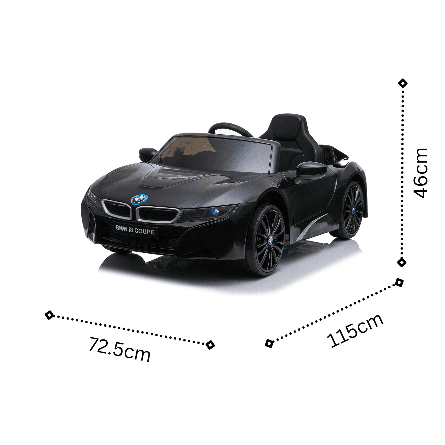 BMW I8 Coupe е идеалната електрическа кола за дете на възраст между 3 и 5 години. Тази кола е вярна копие на автомобила BMW I8, с прецизни и внимателно изработени линии.
