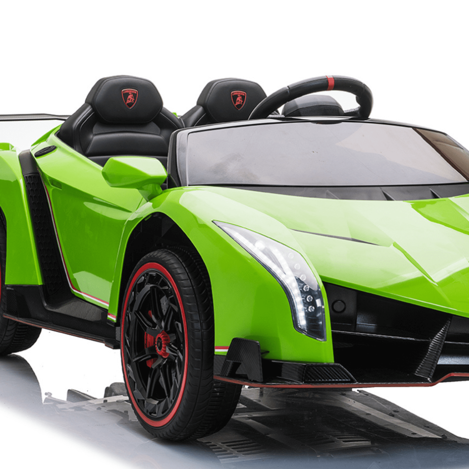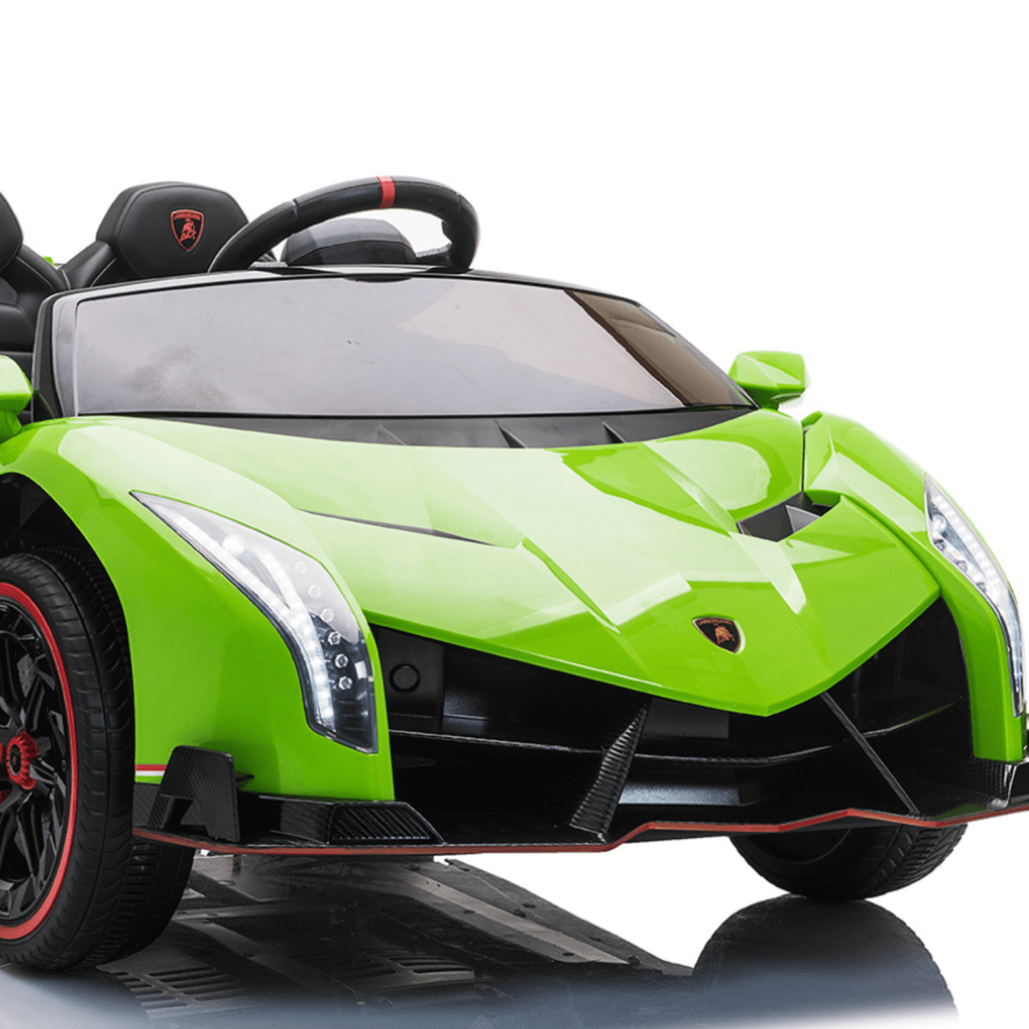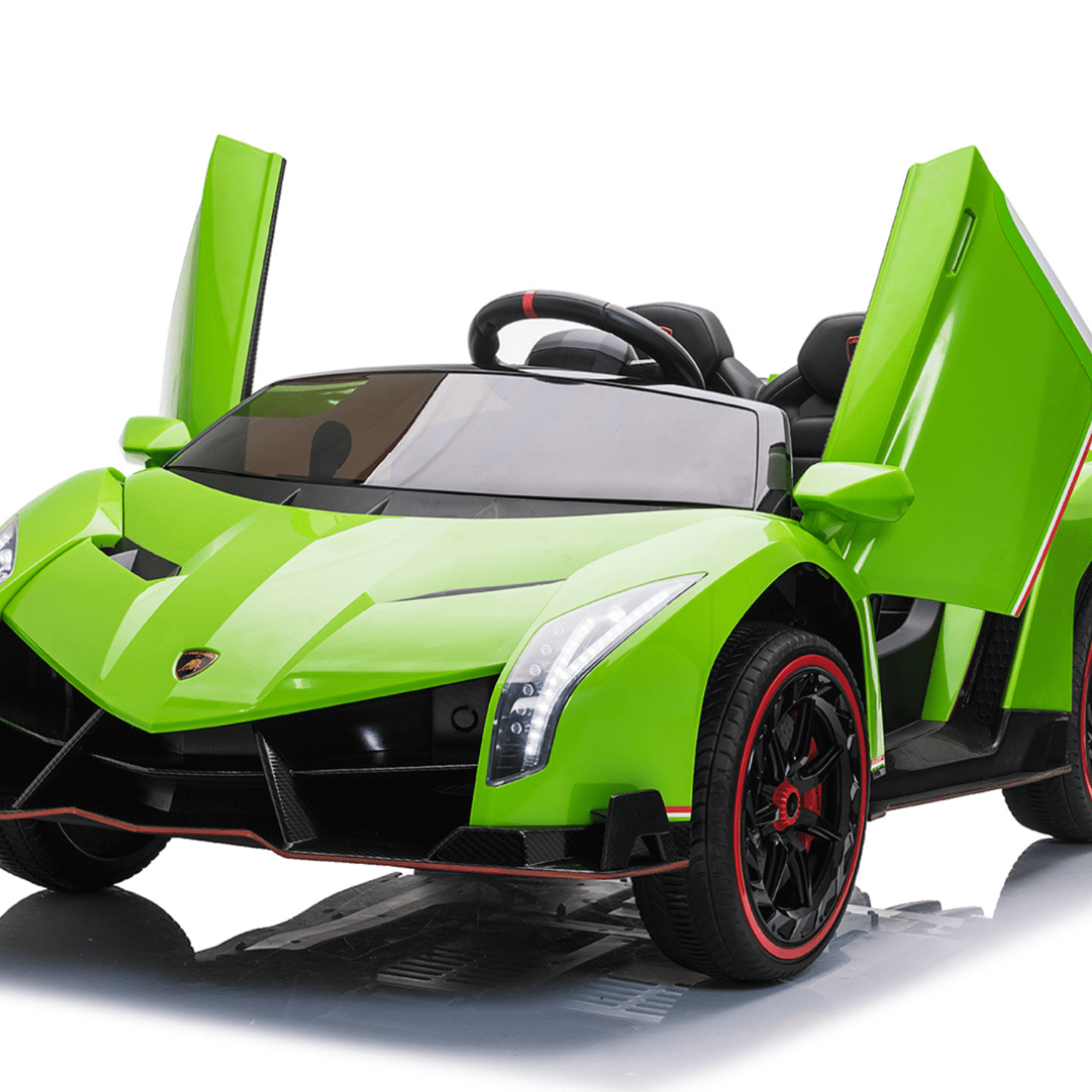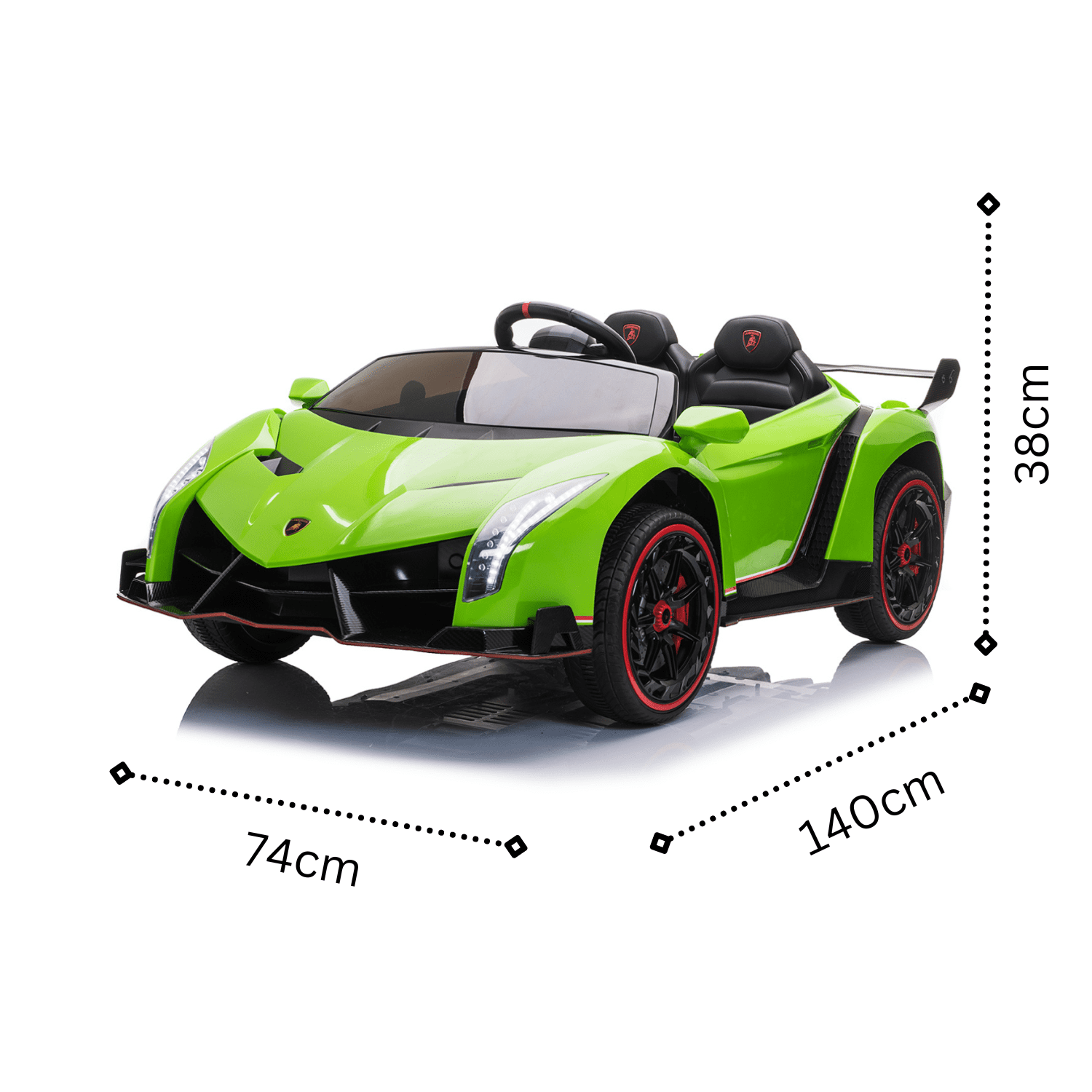 Лицензирана акумулаторна кола Lamborghini Veneno е впечатляваща , която ще запленява въображението на всяко дете. Тази модерна и стилна кола предлага невероятно забавление и разнообразни функции, които ще осигурят незабравимо изживяване на малките шофьори. Интуитивното дистанционно управление с честота 2.4 G осигурява лесна и стабилна комуникация между контролера и автомобила. Това дава възможност на родителите да поемат контрола върху колата в критични моменти или когато детето все още учи да я управлява. Тази кола е перфектният подарък за всяко дете, което иска да изживее автентично преживяване като шофьор.