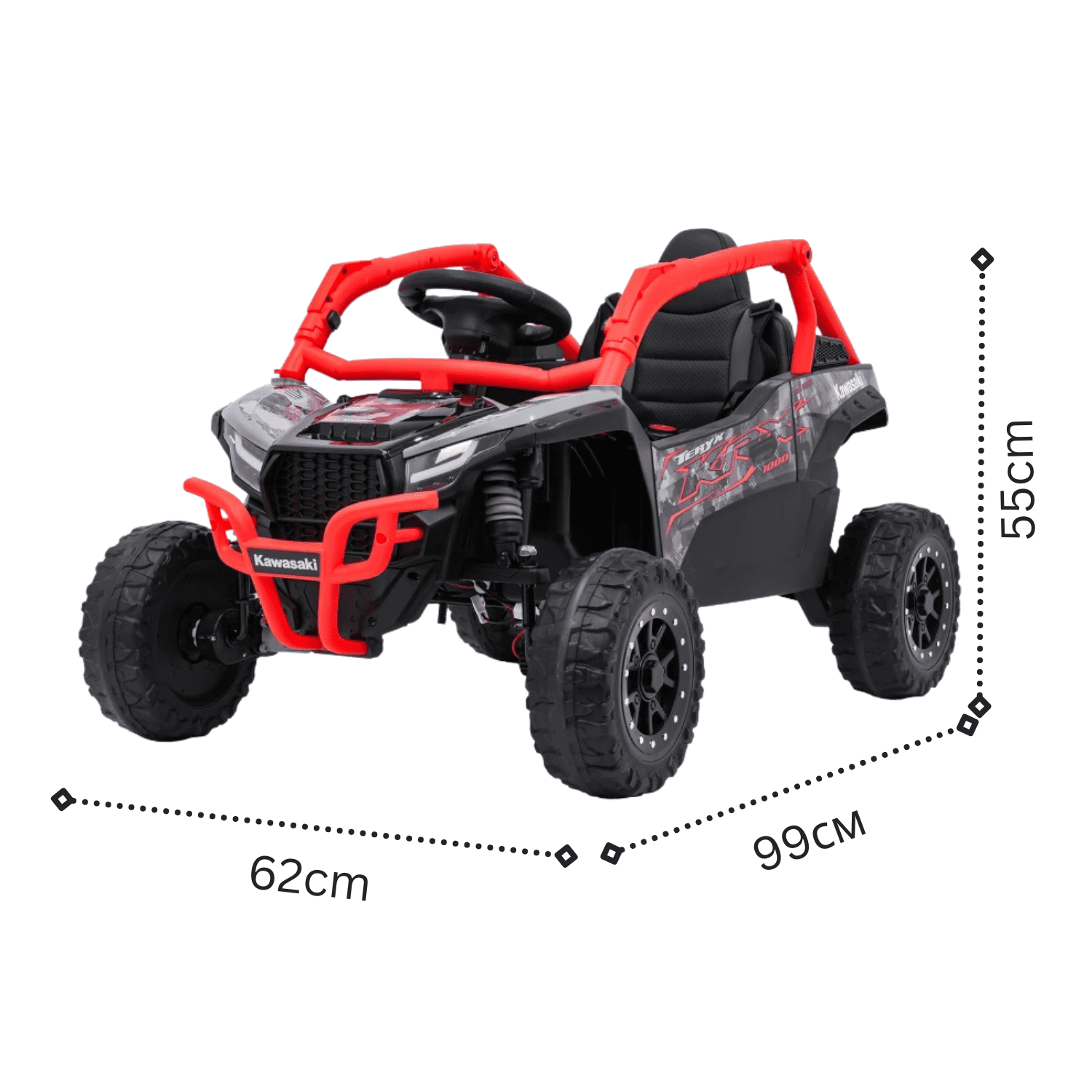 Kawasaki Teryx KRX1000 е мощно, стабилно и реалистично електрическо бъги, създадено за деца, които обичат приключенията и свободата. Вдъхновено от легендарния офроуд модел на Kawasaki, то предлага автентична визия, сигурност и незабравимо изживяване при всяко каране.